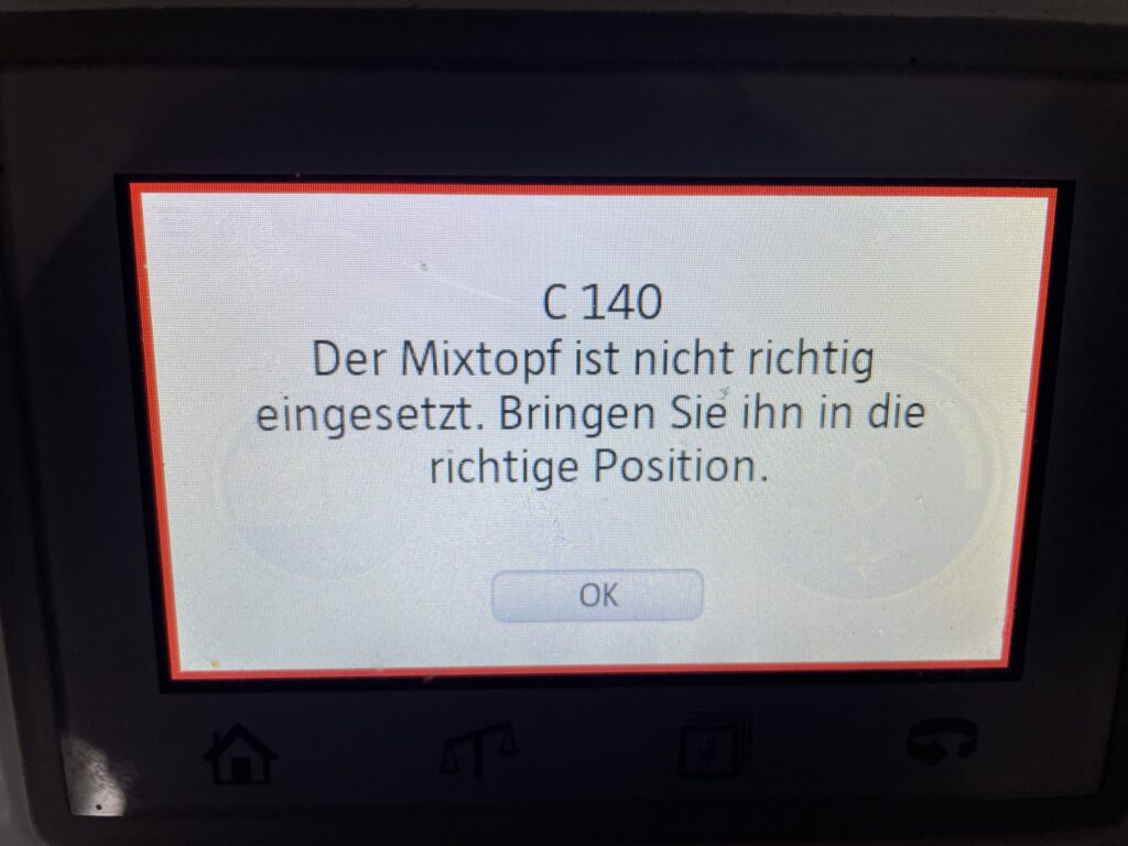 Bei Kleinanzeigen fand ich einen TM5, der nicht mehr zu benutzen war und immer wieder den Fehler C140 – „Mixtopf sitzt nicht richtig in Position“ auslöste.
