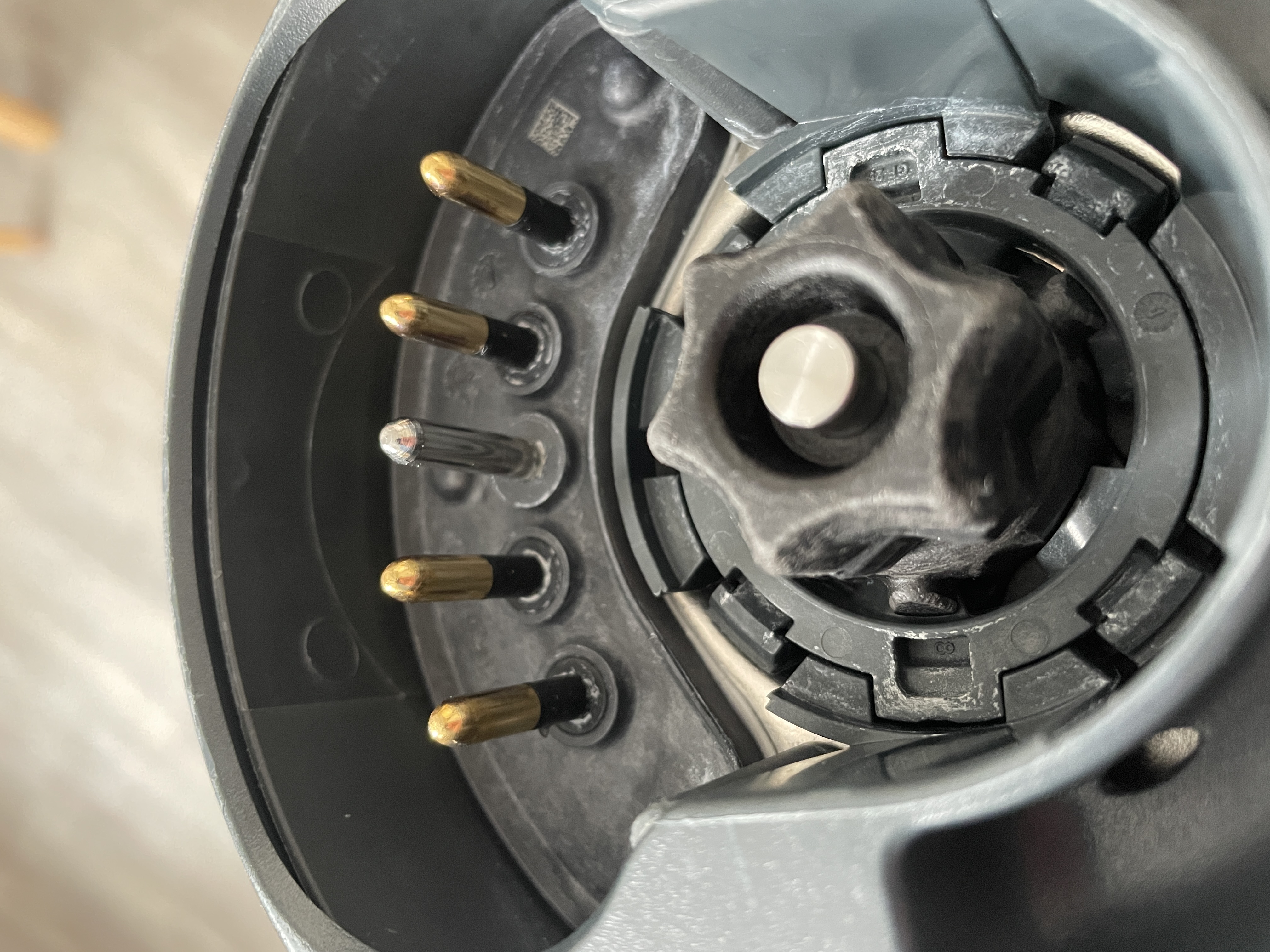 Bei dem „neuen“ Topf waren alle Kontakte in Ordnung, glänzend, klar und nicht rau.